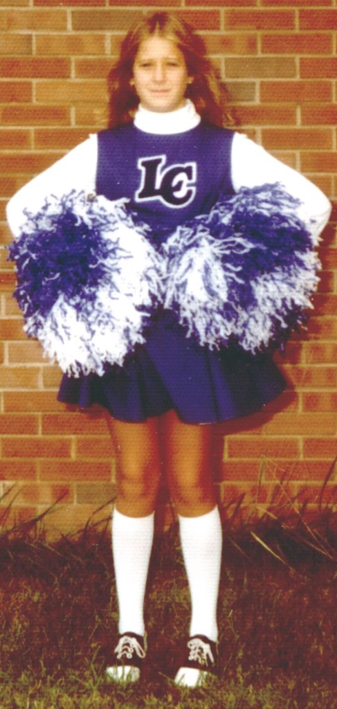 As I moved the braces aside, Dad’s and mine, the next thing in the box was my Long Creek Mustangs cheerleading dress and bloomers. Back then moms or sewing neighbors made our cheerleading dresses. I got mine as a hand-me-down from my neighbor across the street, Sherry Cantrell, who I just happened to think was the prettiest girl in the neighborhood. For several years, I had watched her cheer from the sidelines and wanted to be just like her. Holding up her cheerleading outfit, my cheerleading outfit, tears sprang to my eyes. Those saddle oxfords were my ticket to ride! I tried out for cheerleading and made the squad (though I am not sure there was anyone who tried out that didn’t make the squad)! I absolutely loved those cold Saturday mornings cheering the Mustangs on, my saddle oxfords wet with dew. I especially loved Saturdays when we had home games at Long Creek Elementary School since my Dad was usually working the concession stand and I could grab a Coke and popcorn or a hot dog after our game was over and he would foot the bill.